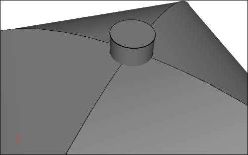An effective way to remove a small feature is to use another volume, such as a cylinder. For this example position and size the cylinder such that it fully encloses the small face and is large enough so as not to become a small feature itself.